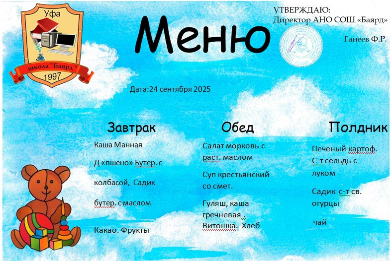 Меню на 24.09.2025г.
