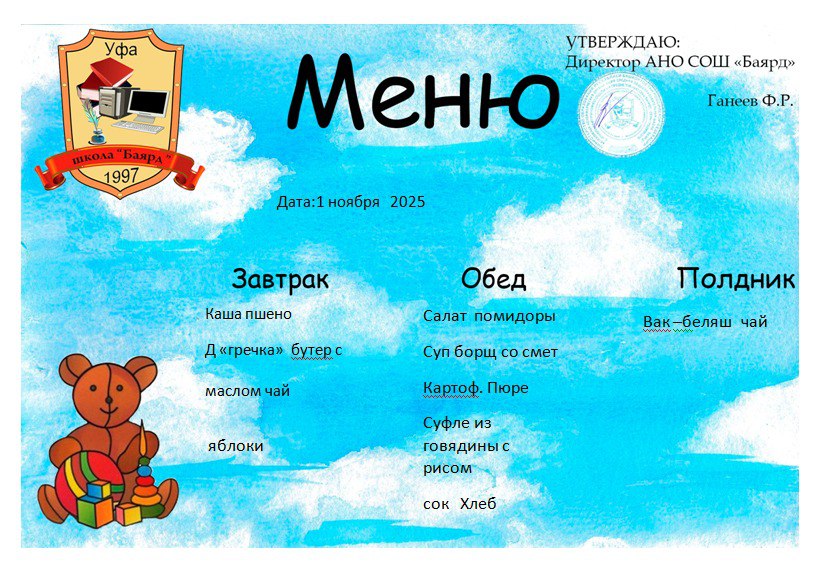 Меню на 01.11.2025г.