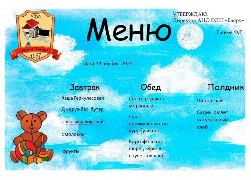 Меню на 14.11.2025г.