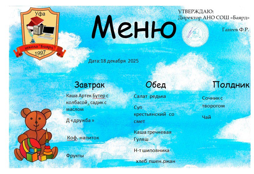 Меню на 18.12.2025г.