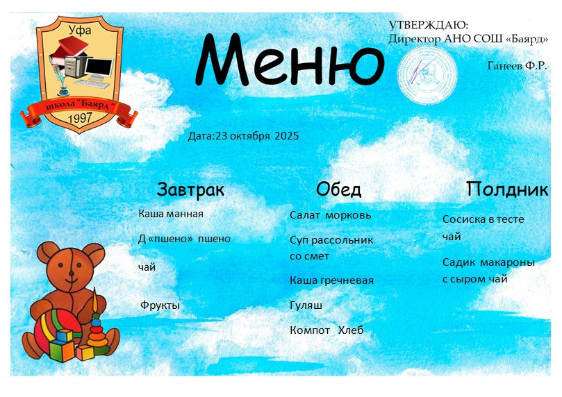 Меню на 23.10.2025г.